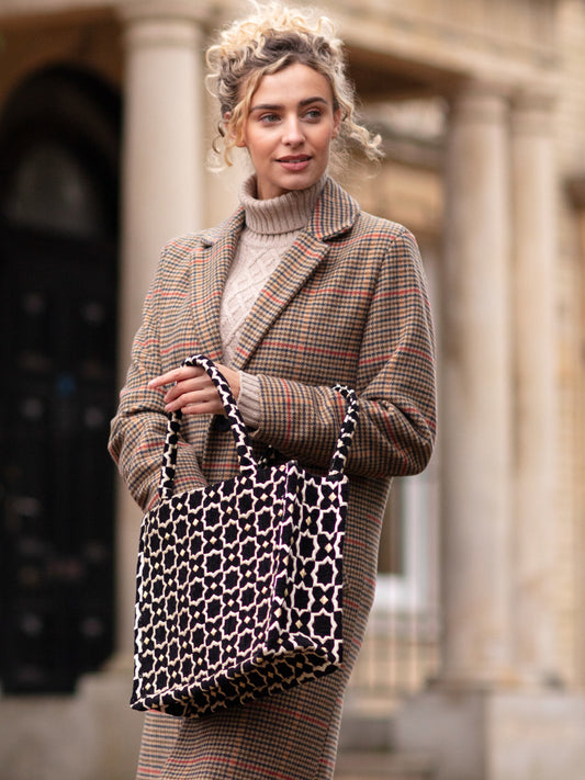Moroccan Geometric Print Fabric Tote Bag in Black