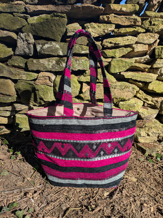 Normaler Preis €55,95 EURNormaler PreisGrundpreis / proVerkaufspreis €55,95 EUREinkaufstasche aus Stoff mit marokkanischem geometrischem Druck in Rosa