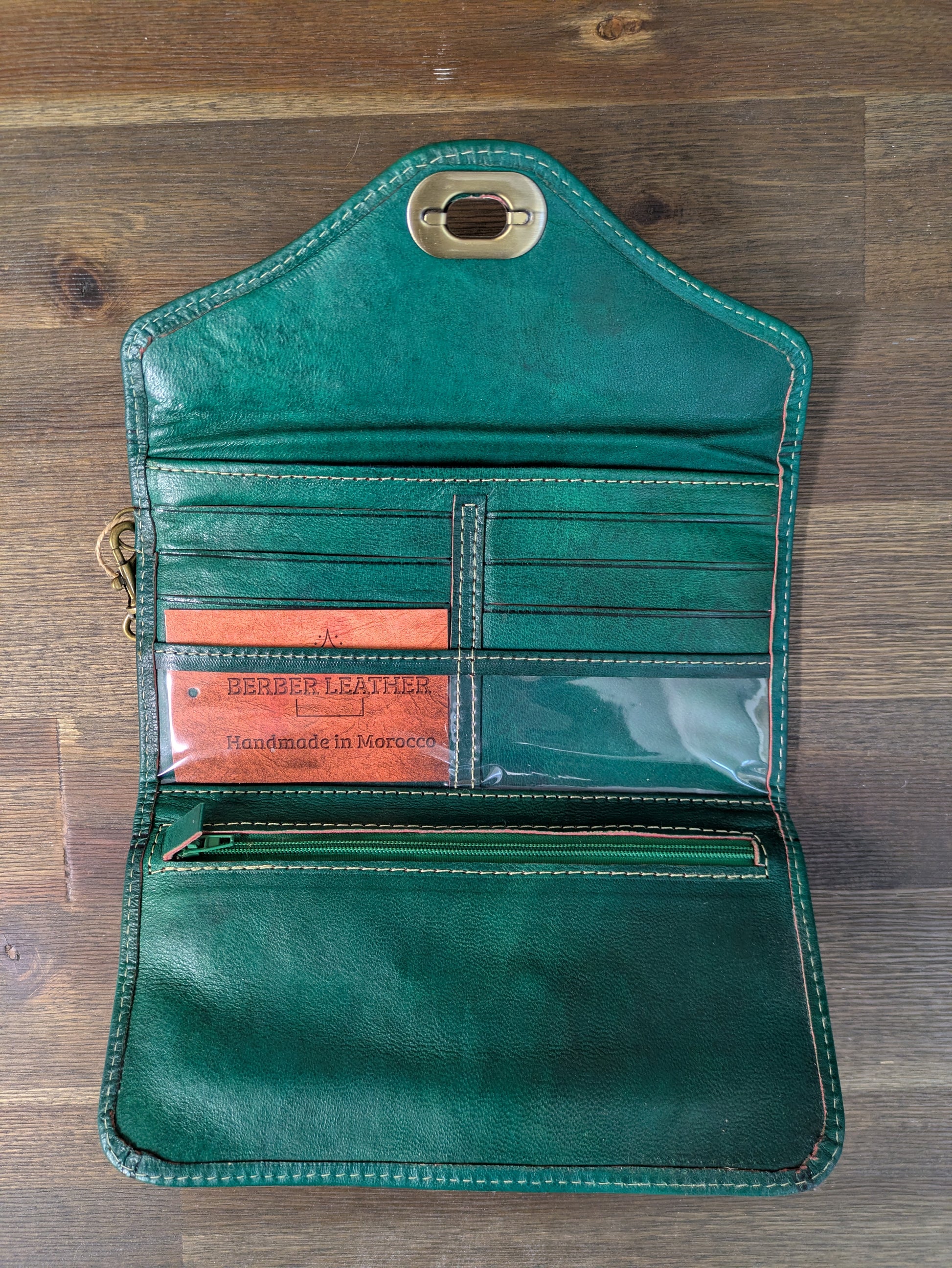Our Large Leather Purse is the perfect way to stand out from the crowd without breaking your bank balance. The vintage style soft leather and hand-stamped design are eye-catching without being garish. This genuine green leather purse has multiple compartments and card slots, making it the perfect purse to help you stay organised.