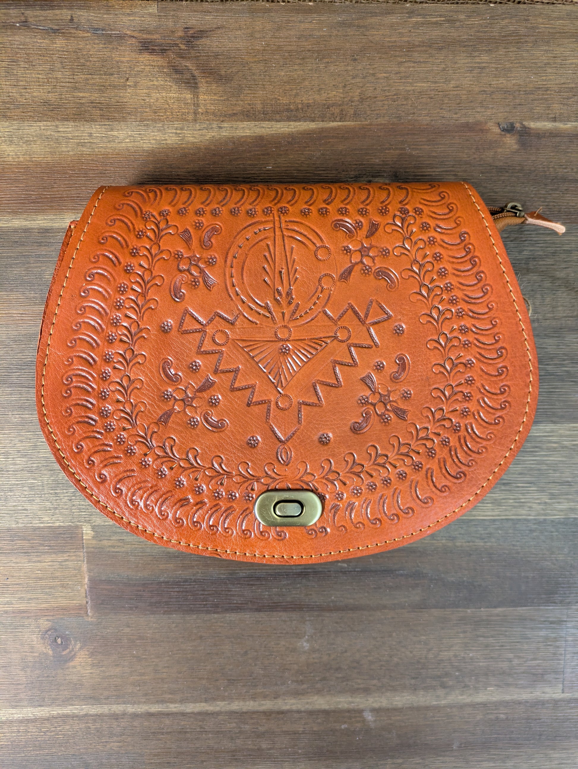 Die geprägte Satteltasche „Temara“ in Hellbraun