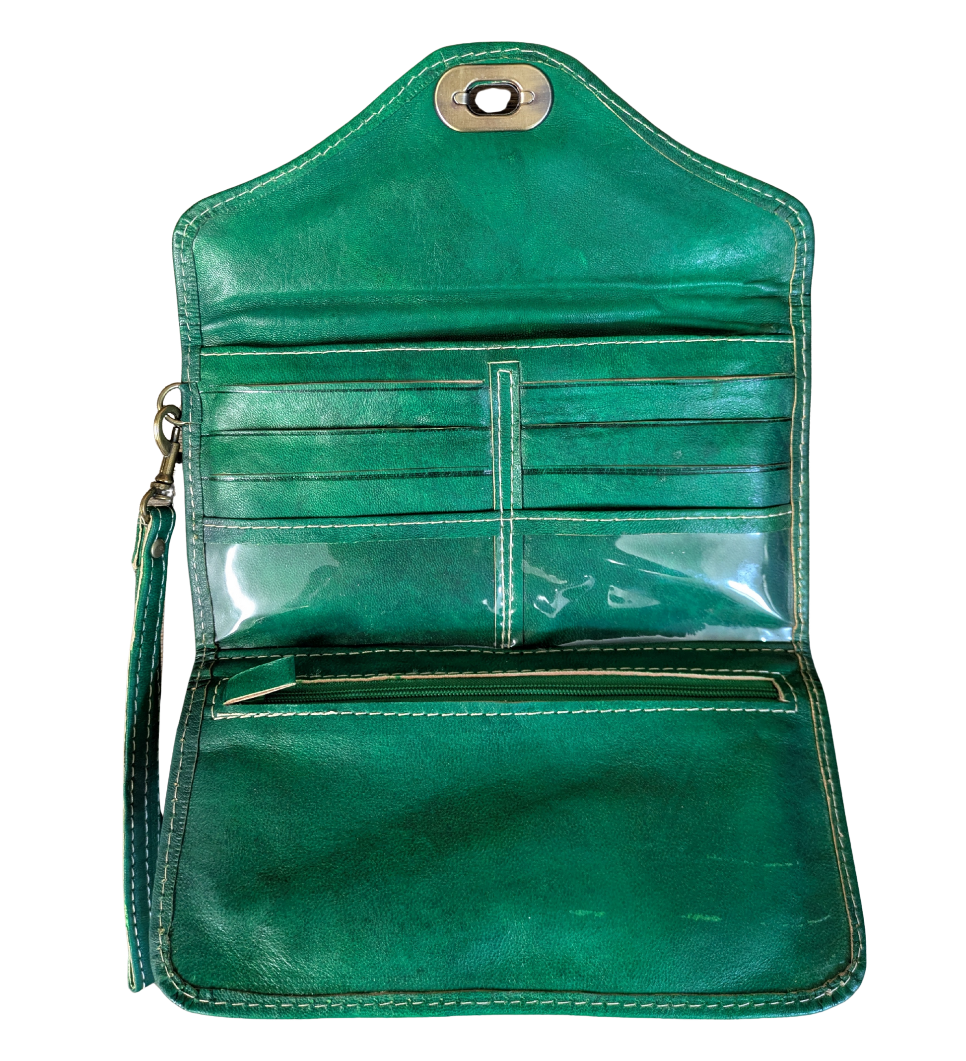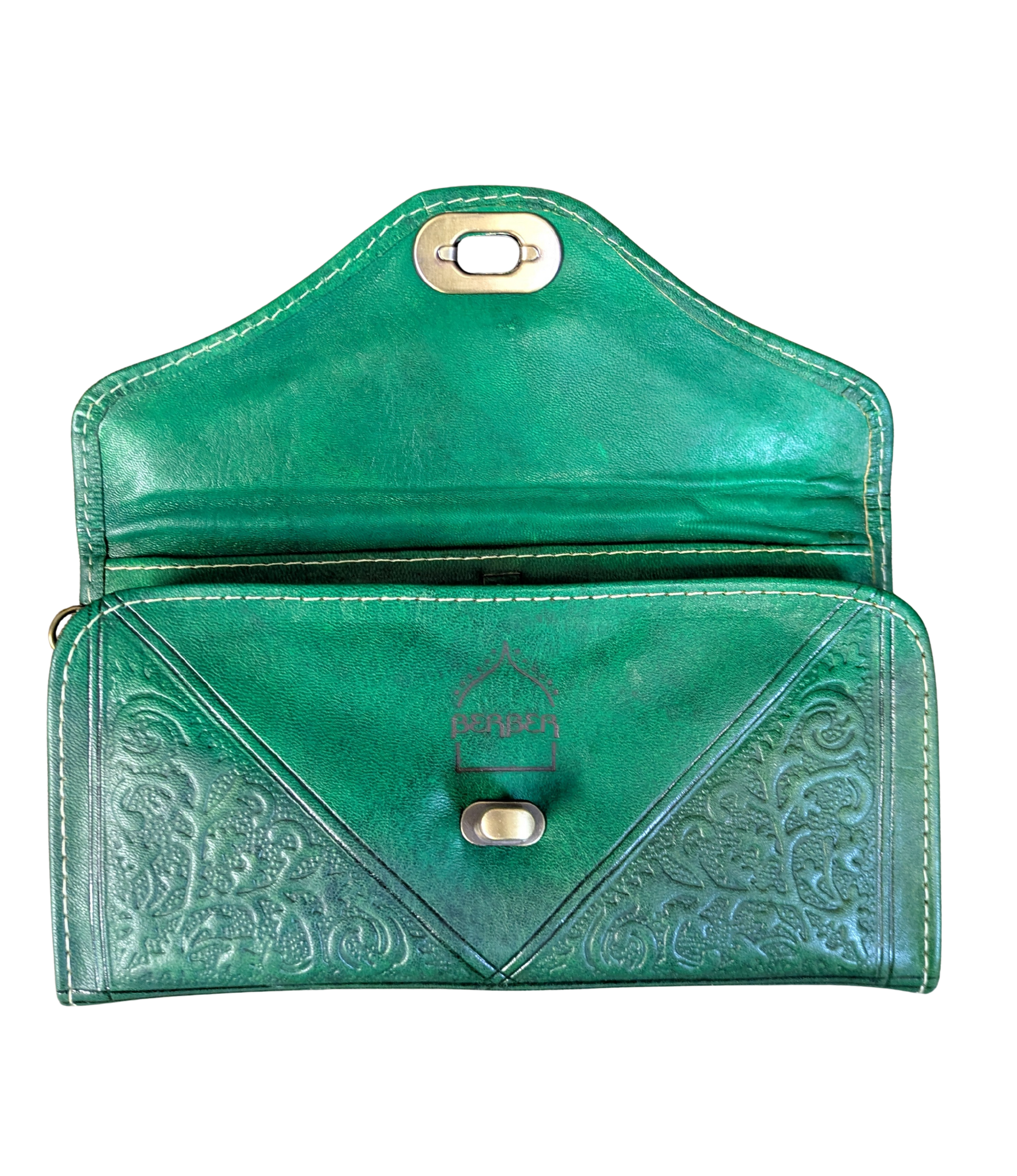 Our Large Leather Purse is the perfect way to stand out from the crowd without breaking your bank balance. The vintage style soft leather and hand-stamped design are eye-catching without being garish. This genuine green leather purse has multiple compartments and card slots, making it the perfect purse to help you stay organised.